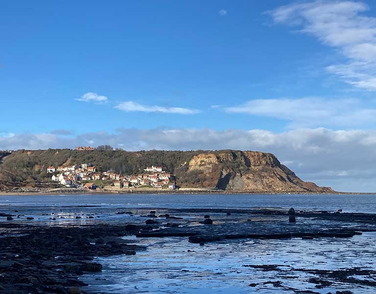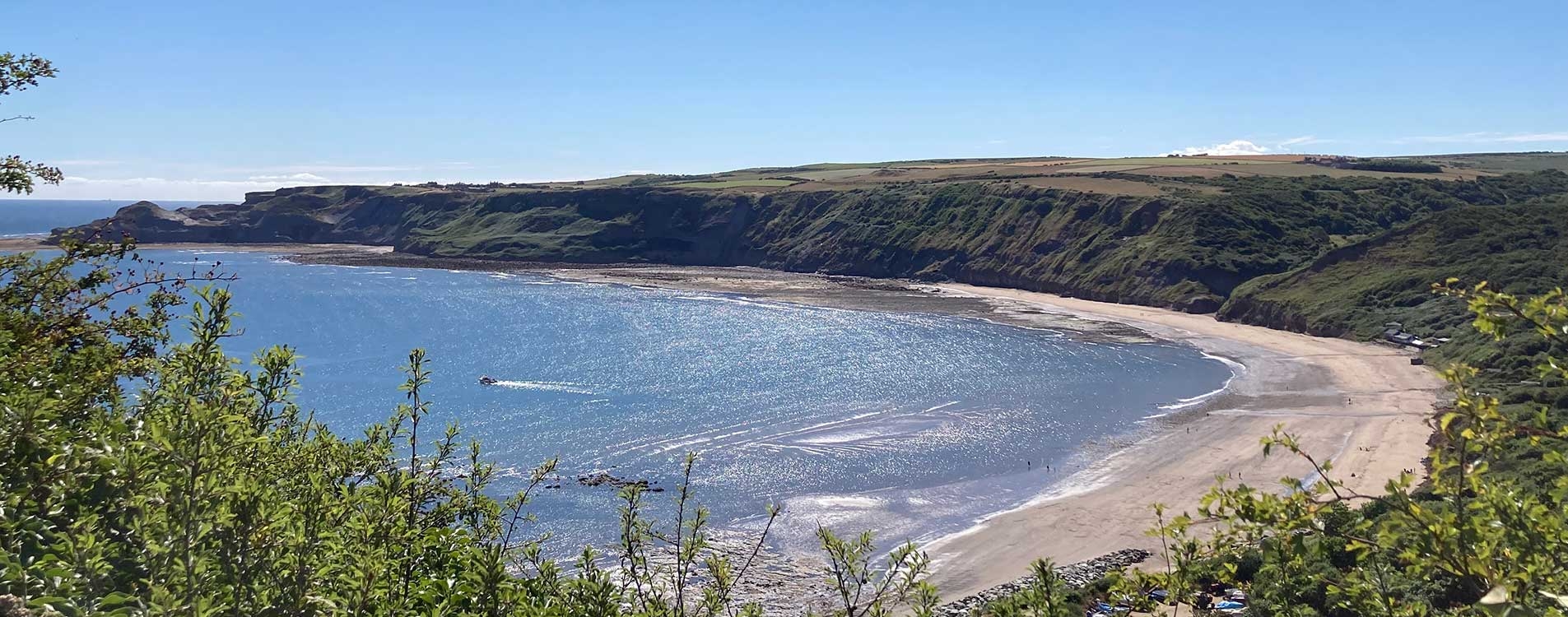 Located just north of Whitby, between Sandsend and Staithes, Runswick Bay is a jewel of the Yorkshire Coast - a huddle of picturesque old cottages clustered at one end of the majestic sandy bay, sweeping round to the rocky grandeur of Kettleness.