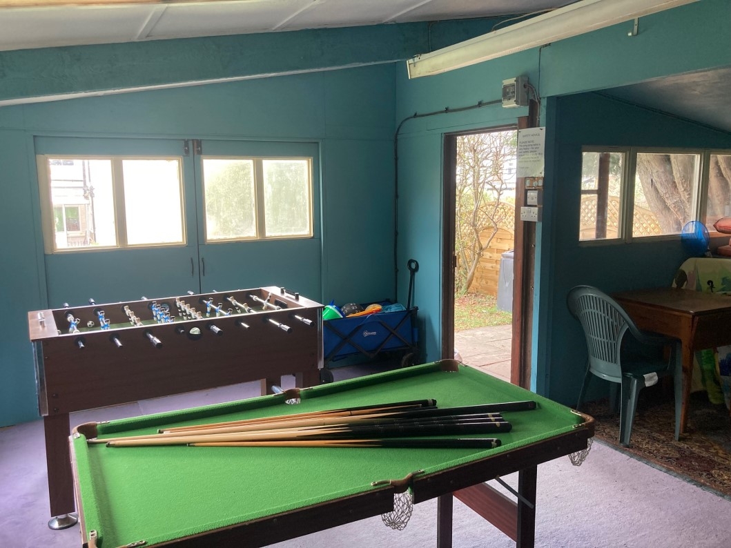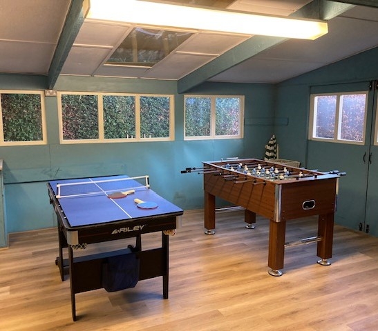 The kitchen overlooks the large enclosed back garden with patio and lawn, garden furniture and barbecue - a private haven for when the tide is in. The large wooden outhouse play 'den' has games and toys (including table football, pool and table tennis) so it can be used by the younger guests, as well as the young at heart! The storm porch is also a great place to store coats, wellies and boots etc en route into the house, especially when returning from the beach or a walk.
